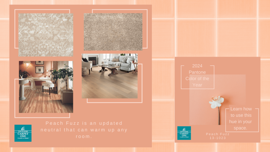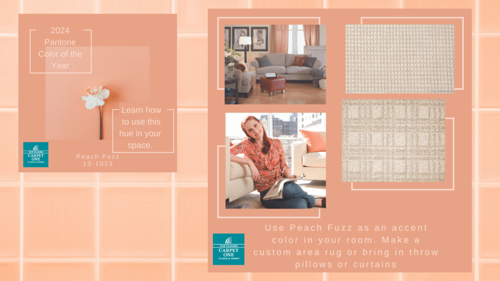 A rug is the easiest way to embrace a color of the year without committing to it long term. Any hardwood or woodlook floor with a warm undertone could handle a peach rug.